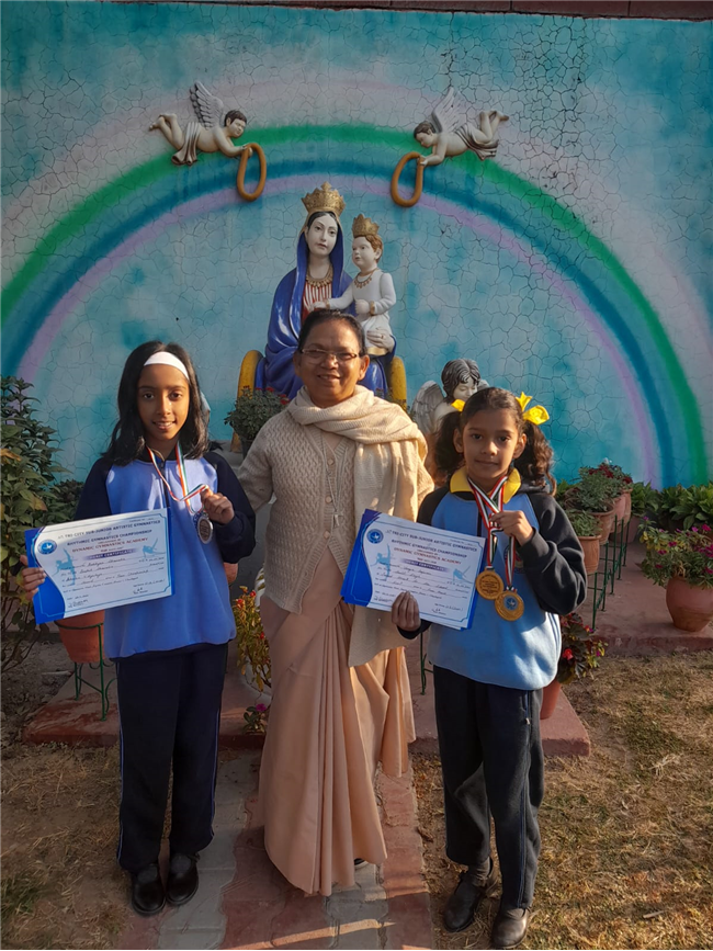 Vanya Sajwan of Class II Aspen bagged the first position in Ball event and Free Hand event and was awarded with Gold Medals and Certificates for both the events.