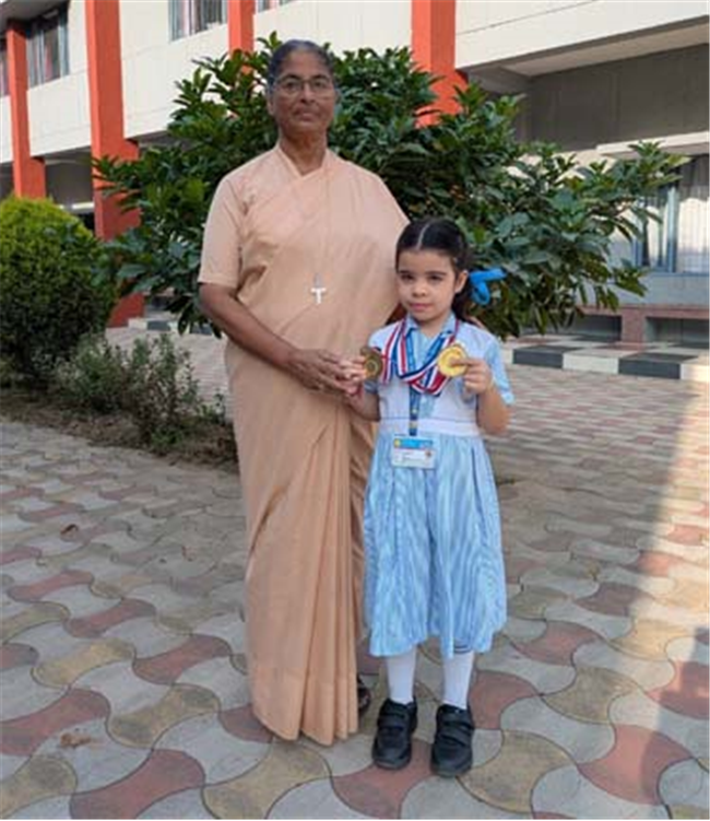 Naira Abrol of Class UKG (Blueberry) delivered an outstanding performance at the 5th Velocity Roller Skating Championship 2025, held from 1st to 2nd November 2025 at Mount Carmel School, Zirakpur and organised by the Velocity Skating Club, Mohali. Showcasing remarkable speed, balance and determination, she secured First Position in both the 300m inline skating and 500m inline skating events. For her splendid achievement, Naira was awarded two Gold Medals. Her success is a true reflection of her hard work and passion for skating and we congratulate her on this brilliant accomplishment.