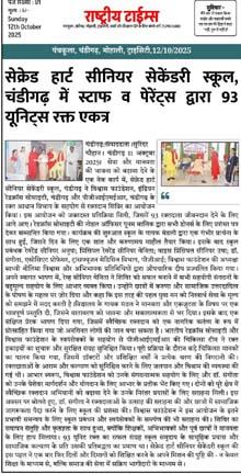 Sacred Heart Senior Secondary School, in collaboration with Vishwas Foundation, Indian Red Cross Society, and the Blood Transfusion Department of PGIMER, organized a blood donation camp. The event received an overwhelming response, with 93 blood donors coming forward to save lives. Poonam Malik, Nodal Officer of the Red Cross Society, honored all the donors with certificates of appreciation. The program began with a solemn prayer by the school choir, which created a calm and compassionate atmosphere for the day. The school choir gave a moving performance on the theme of humanity and solidarity, filling the atmosphere with emotion and positivity. This was followed by a short motivational speech, encouraging voluntary blood donation.
