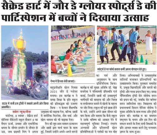 Sacred Heart Senior Secondary School, Sector-26, organized its “Glorious Sports Day 2025” with great zeal and enthusiasm. The event was marked by excitement, joy, and an energetic display of athletic spirit. The event began with the traditional lamp-lighting ceremony, followed by the welcome of the chief guest, Dr. (name not mentioned), who emphasized the importance of physical education and sports in overall personality development. Students from various classes participated in different sports and fun games, showcasing their team spirit and sportsmanship. The school ground was beautifully decorated, and the grand sports trophy displayed on the field attracted everyone’s attention.The event began with a grand march past, followed by a series of entertaining races and group performances. The parents and guardians of the students participated enthusiastically and cheered loudly for the participants. The chief guest appreciated the efforts of the school management and teachers for providing students with opportunities to excel not just academically but also in co-curricular and sports activities. A prize distribution ceremony was also held, where outstanding athletes and winners were honored with medals and trophies. The day concluded with the national anthem and a vote of thanks, leaving everyone inspired and full of pride.