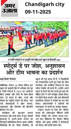 Sacred Heart Senior Secondary School, Sector-26, organized its “Glorious Sports Day 2025” with great zeal and enthusiasm. The event was marked by excitement, joy, and an energetic display of athletic spirit. The event began with the traditional lamp-lighting ceremony, followed by the welcome of the chief guest, Dr. (name not mentioned), who emphasized the importance of physical education and sports in overall personality development. Students from various classes participated in different sports and fun games, showcasing their team spirit and sportsmanship. The school ground was beautifully decorated, and the grand sports trophy displayed on the field attracted everyone’s attention.The event began with a grand march past, followed by a series of entertaining races and group performances. The parents and guardians of the students participated enthusiastically and cheered loudly for the participants. The chief guest appreciated the efforts of the school management and teachers for providing students with opportunities to excel not just academically but also in co-curricular and sports activities. A prize distribution ceremony was also held, where outstanding athletes and winners were honored with medals and trophies. The day concluded with the national anthem and a vote of thanks, leaving everyone inspired and full of pride.