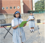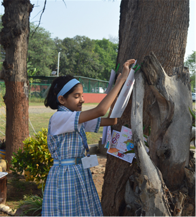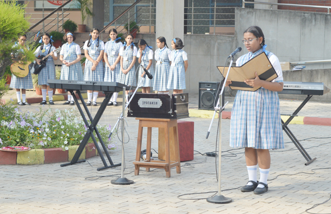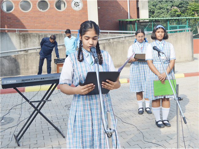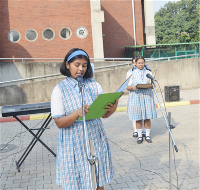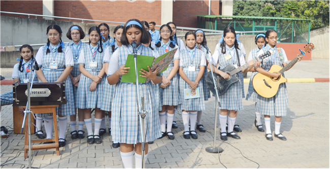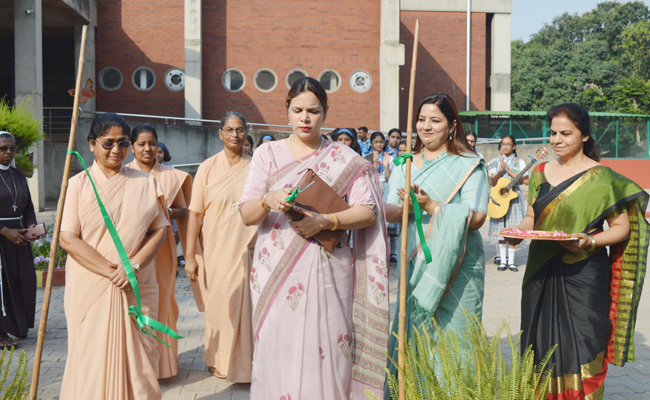 The event was graced by Ms. Hairatjit Kaur Brar, Indian Forest Service Officer and DTO-cum-Secretary, Road Transport Authority, Panchkula, as the chief guest. The ceremony commenced with the school prayer, setting a reflective tone for the proceedings. Ms. Brar was given a symbolic "green welcome" by students and faculty, in line with the theme of environmental harmony.