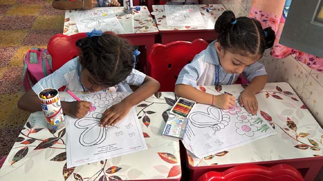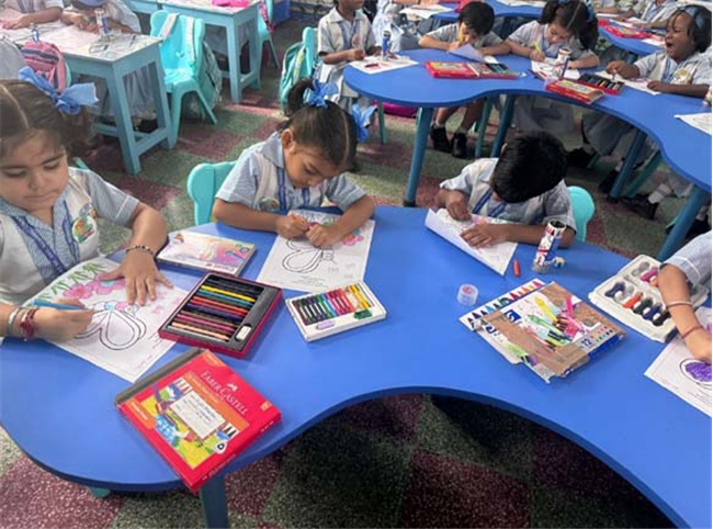 The little artists of Class Nursery recently participated in a Colouring Competition filled with joy and creativity. With their tiny hands, they held crayons confidently and showcased an impressive grip and sense of colour. It was heartwarming to see how beautifully they blended colours and filled their pictures with imagination. The children presented delightful work, reflecting both their growing skills and their love for art. Truly, our tiny tots turned the day into a canvas of happiness and vibrant hues!