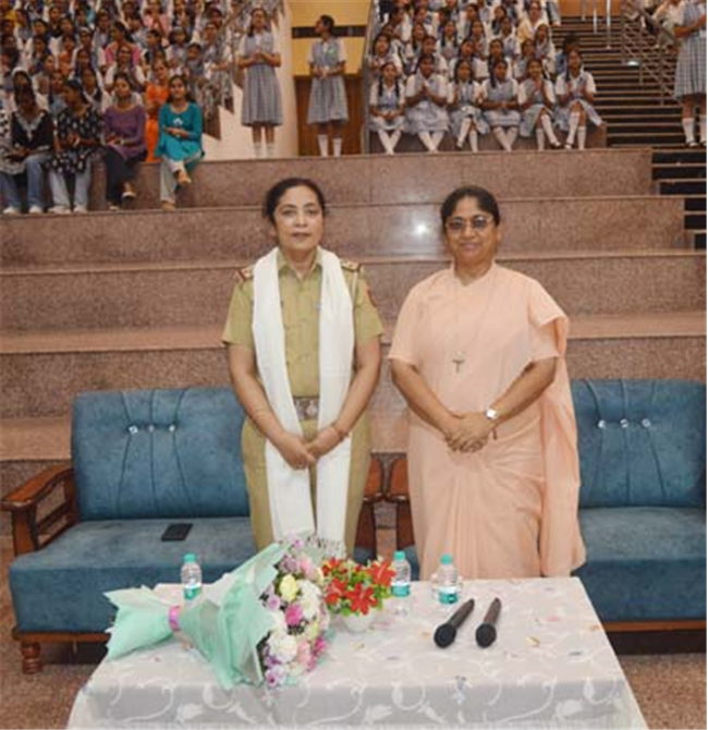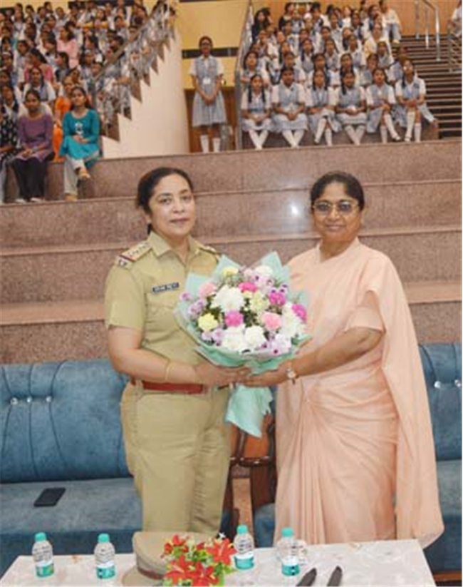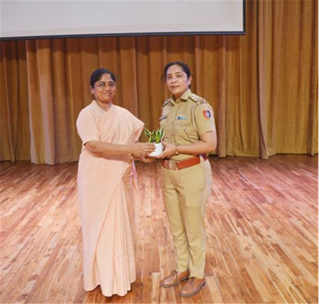 The programme began with a prayer, a welcome address, and a formal introduction of the speaker. Rev. Sr. Venita, the Principal, presented a bouquet to Inspector Rizvi as a token of welcome. After an engaging and insightful session, the Principal also presented a robe and planter to the speaker in appreciation of her time and valuable guidance.