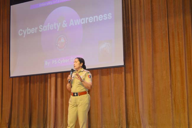 The session was conducted by Inspector Eram Rizvi, SHO, Cyber Crime, Chandigarh, a decorated officer known for her outstanding service in law enforcement and international peacekeeping. She guided students on safe internet practices, cyber laws, and precautionary measures to protect themselves in the digital space.