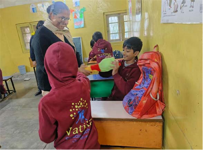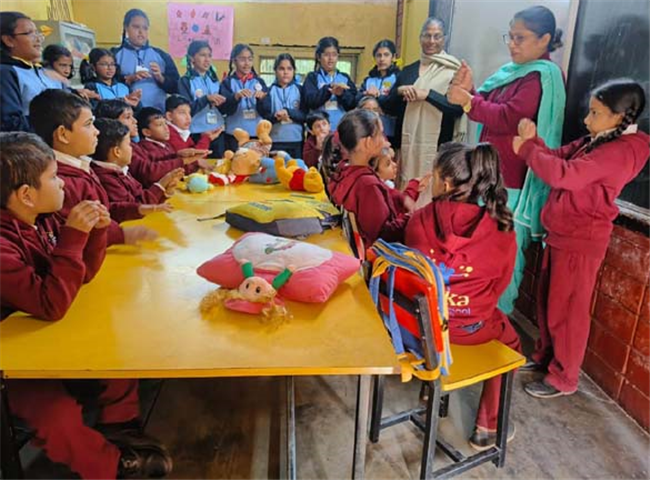 The students of the Early Act Club for classes IV and V had an emotional but a life time experience as they visited the Vatika Special School in Sector 19 today. The mission of this visit was to share joy and happiness through the Toy Donation Drive on the occasion of Children's Day. The students at the Vatika School communicated joyfully with the members of the club through sign language under the guidance of their able teachers. Their simple smiles and excitement at receiving the toys were worth capturing. The students were humbled by the simplicity of these children and the delight that lit their faces on seeing the toys.