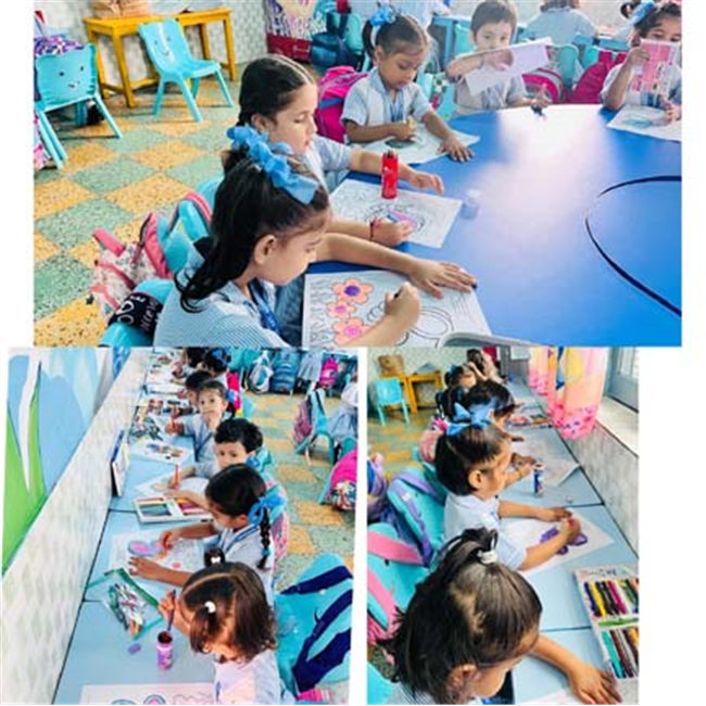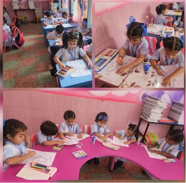 The little artists of Class Nursery recently participated in a Colouring Competition filled with joy and creativity. With their tiny hands, they held crayons confidently and showcased an impressive grip and sense of colour. It was heartwarming to see how beautifully they blended colours and filled their pictures with imagination. The children presented delightful work, reflecting both their growing skills and their love for art. Truly, our tiny tots turned the day into a canvas of happiness and vibrant hues!