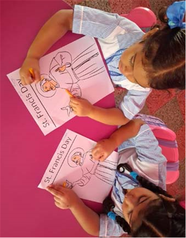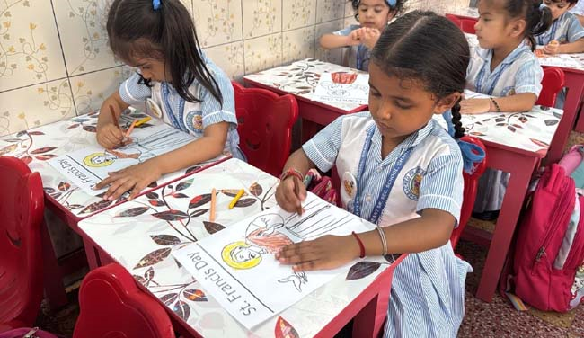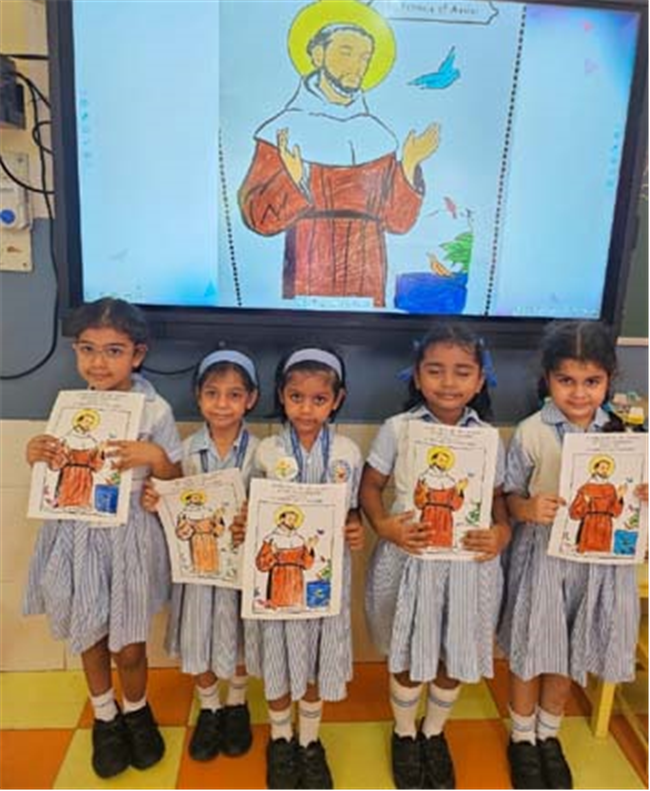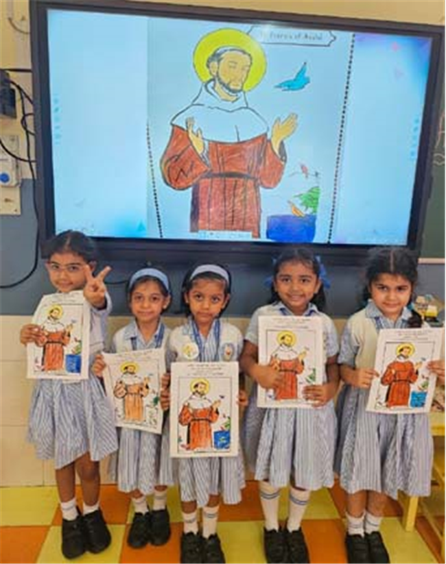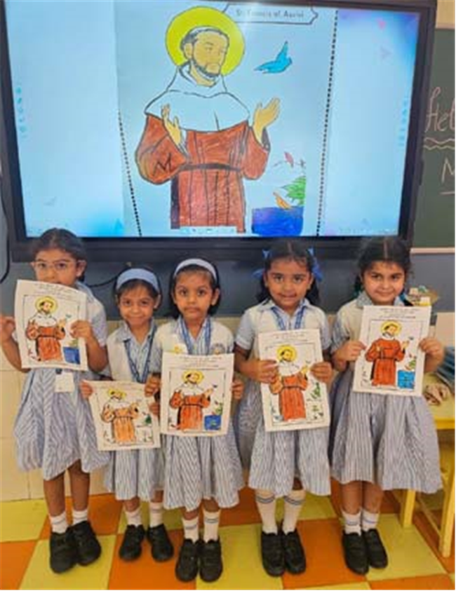 Students of Class I and their teachers discussed the inspiring life of Saint Francis of Assisi, the patron saint of our school, and reflected on his message of peace, kindness, and love for all creatures. The celebration concluded with a colouring activity based on the theme, making it a joyful and meaningful experience for all.