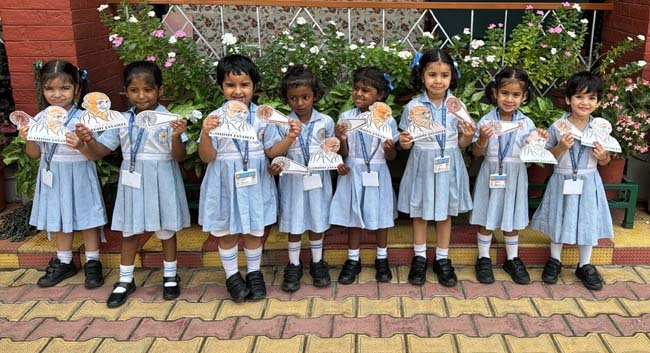 Students of the Pre-Primary and Class I celebrated Saint Francis Day with great enthusiasm and creativity. The Nursery children enjoyed a vibrant Jungle Theme celebration that reflected the saint’s love for nature and all living beings. In LKG, an engaging Nature Walk activity was conducted, helping children observe and appreciate the beauty around them. UKG students watched interesting videos on nature and participated in creative leaf-printing to make beautiful butterflies.